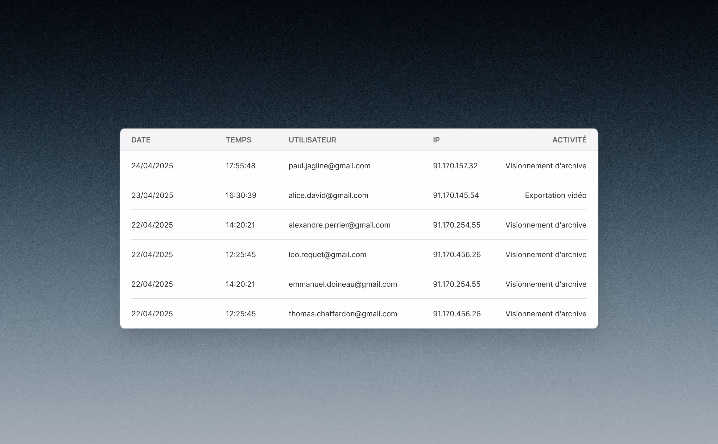 Seuls des agents habilités au sein de la collectivité peuvent visionner les vidéos ou les clichés pertinents. Chaque action est enregistrée et tracée (historique de consultation, date, heure, etc.).